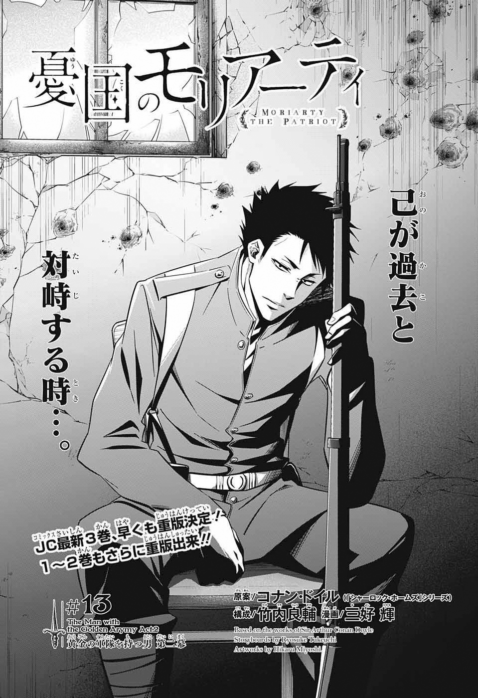 The Man with the Golden Army Act 2 (The Man with the Golden Army Act 2 黄金の軍隊を持つ男 第二幕, The Man with the Golden Army Act 2 Ōgon no Guntai o Motsu Otoko Dai Ni Maku) is the thirteenth chapter of the MORIARTY THE PATRIOT manga series.
